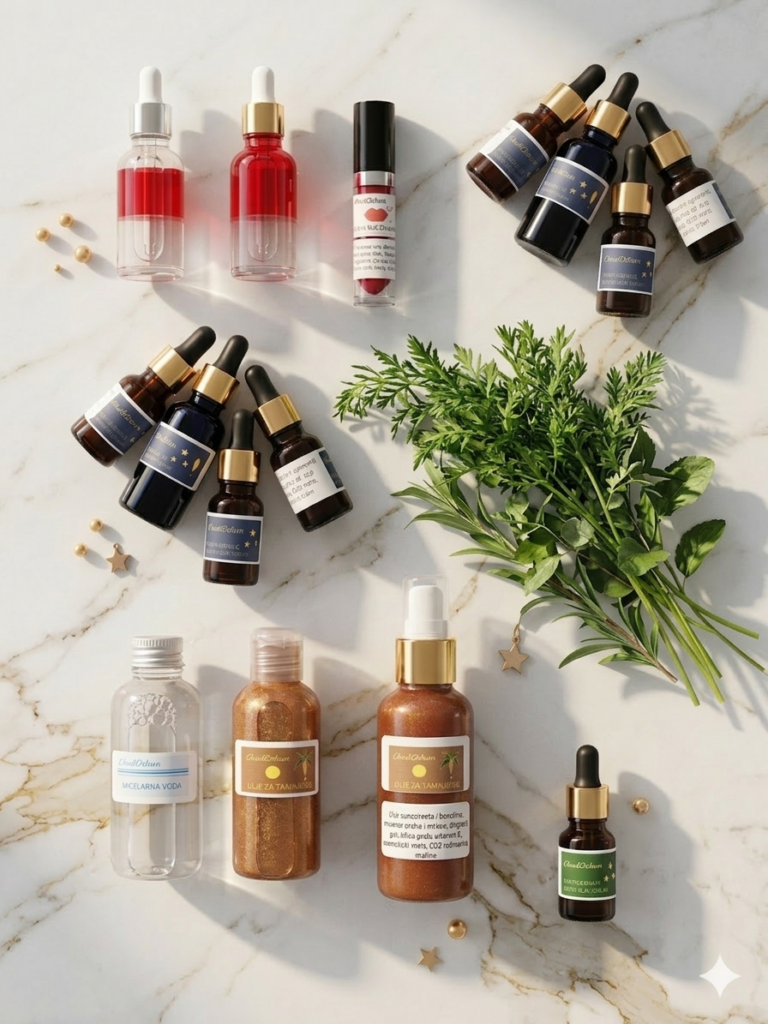 Élaboration de textures uniques — émulsions, sérums, huiles, baumes, gels, biphase, triphase, masques, gommages, toners et eaux micellaires en combinant précision, sensorialité et efficacité.